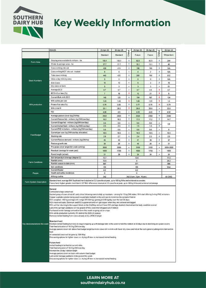 Discussing options for lighter cows i.e. drying off now vs increased inshed feeding