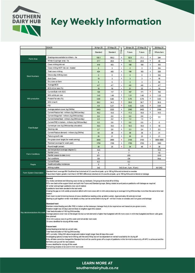 If dry off date cannot be changed the Standard herd will be used to graze off a couple of paddocks in this farmlet to ensure dry off APC is achieved and the farmlet is set up well for next season